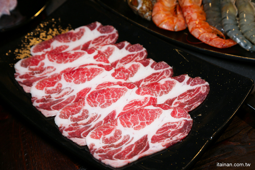 幾乎把全品項的牛肉都點上了,像是安格斯黑牛、五花牛、雪花牛、牛肋條、霜降牛,品質都還不錯,沒讓我們挑剔到。