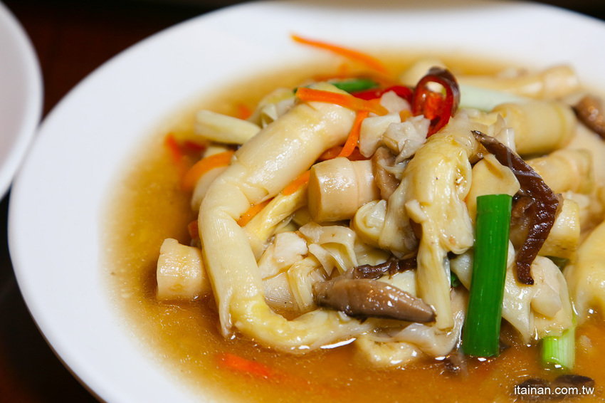 真的很少見的古早味炒花菜乾居然在這也吃到,是以鹽漬後的白花椰菜曬成乾,爆炒出香氣,雖然是看似簡單的一道料理,卻是單純的復古味,酸鹹香三味並重超下飯的,這以前可都是要鄉下阿嬤才會做的料理呢!!
