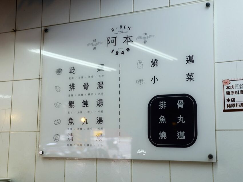 成立於1940年的阿本燒賣,原先用的字是燒邁,經過八十多年的淬煉,店內的招牌以白底黑字,營造出文青的風格。