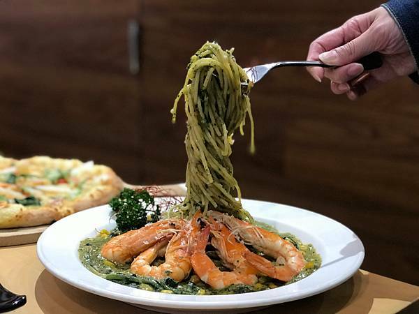 鮮蝦義大利麵 青醬羅勒口味 248元
