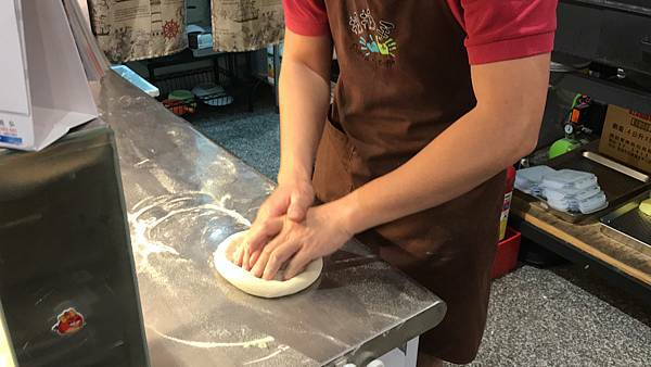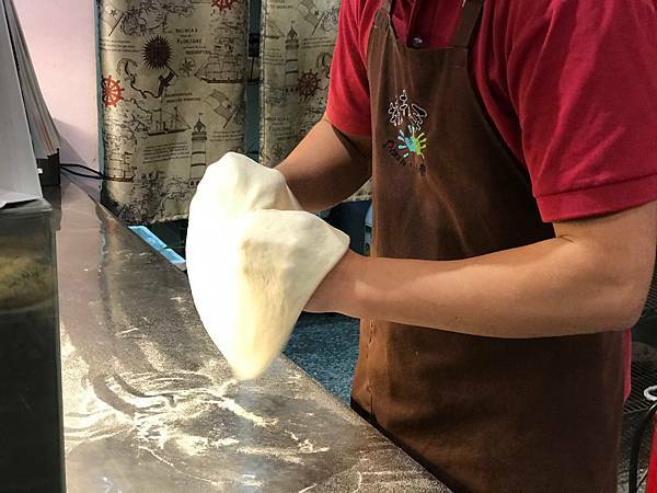原本圓圓胖胖的麵糰經過店家的巧手漸漸變成扁平的PIZZA餅皮