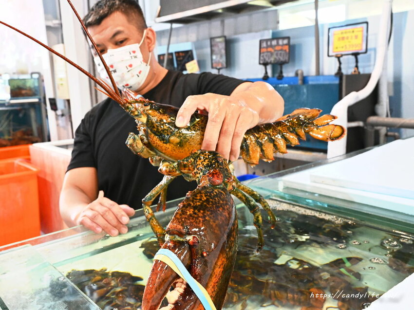水族箱裡頭還有個吸睛的寶貝,就是這隻戰神波士頓龍蝦,真的有夠大隻,叫糖糖抓糖糖還不敢抓呢(笑