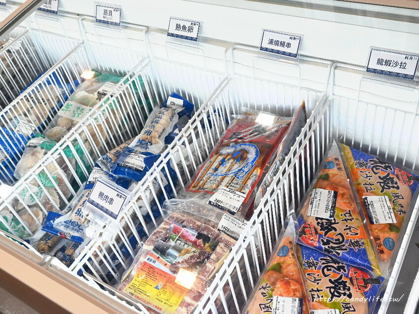 另外一邊是生鮮冷凍櫃,這裡頭的海鮮品項更豐富,魚、蝦、蟹、貝類等海鮮通通有,還有豬、雞、牛、羊等肉品也是應有盡有,只要來一趟村井水產就能讓你買好買滿,大豐收回家