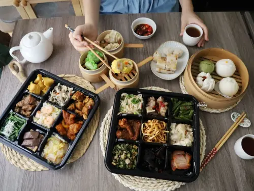 剛剛好,可以選擇午餐20道799元,或是晚餐9宮格27品。剛朋友家人看到也都說要點起來,港點真的很少外帶這麼澎湃的啦。