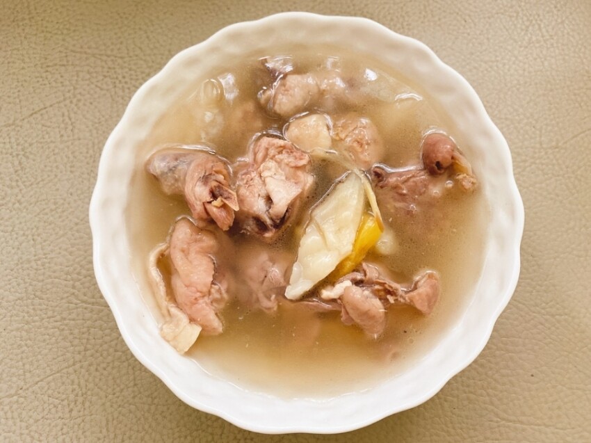 蔭鳳梨雞湯使用卡多良食故事館自家製作的關廟鳳梨蔭醬(關廟鳳梨蔭醬卡多良食故事館官網內也有賣),把雞湯熬得酸甜溫潤,每一口都是媽媽的好味道!
