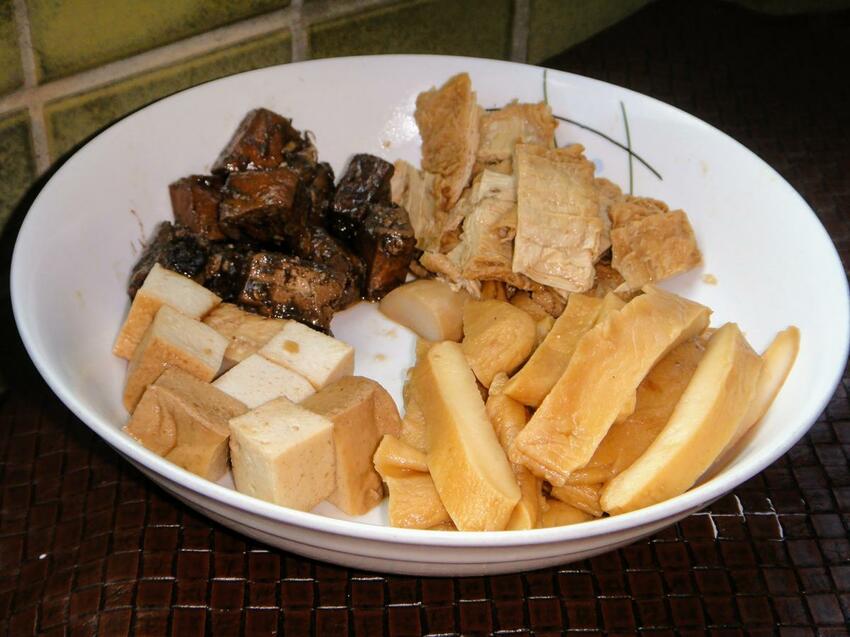 兩片一組的「甜不辣」Q彈有嚼勁,咀嚼後散發魚漿的鮮美風味,「百頁豆腐」彈牙有咬勁,「豆皮」完全吸附了滷汁的精華,每個都是很適合飯前的小菜,或者是配酒的最佳選擇。