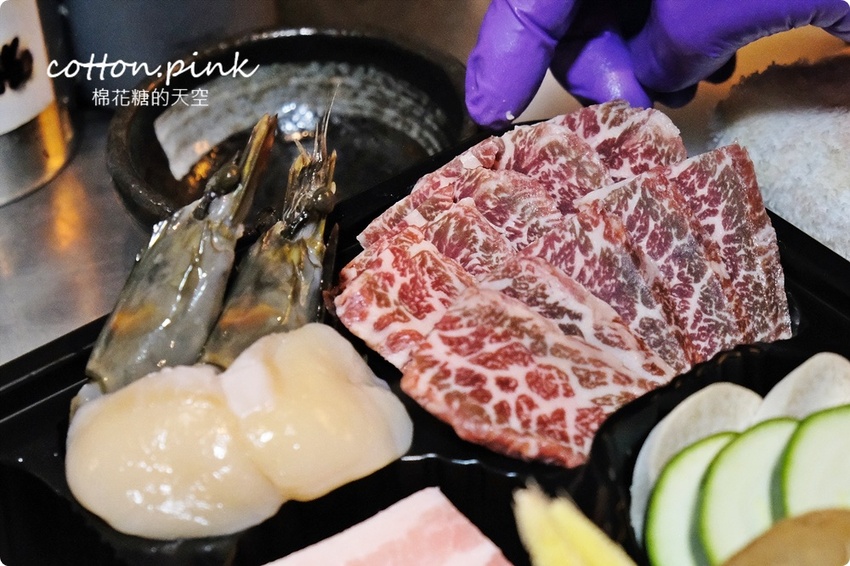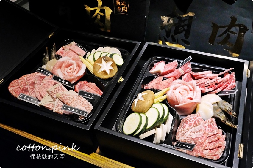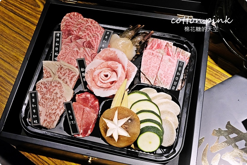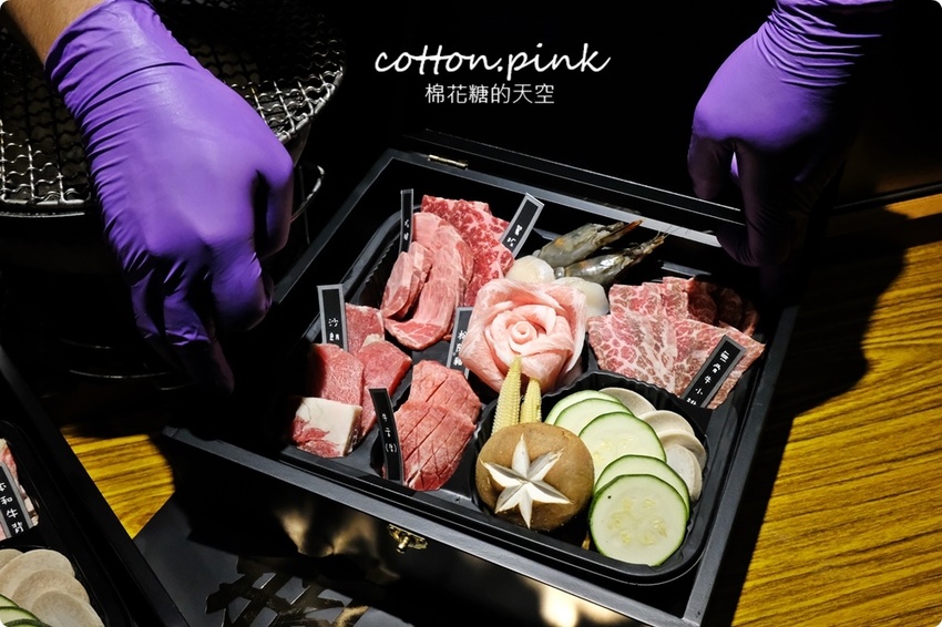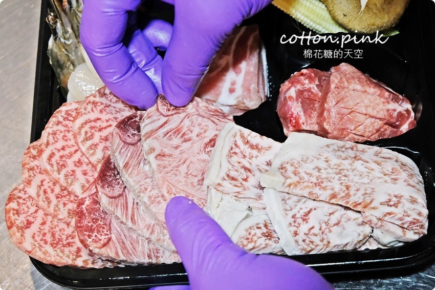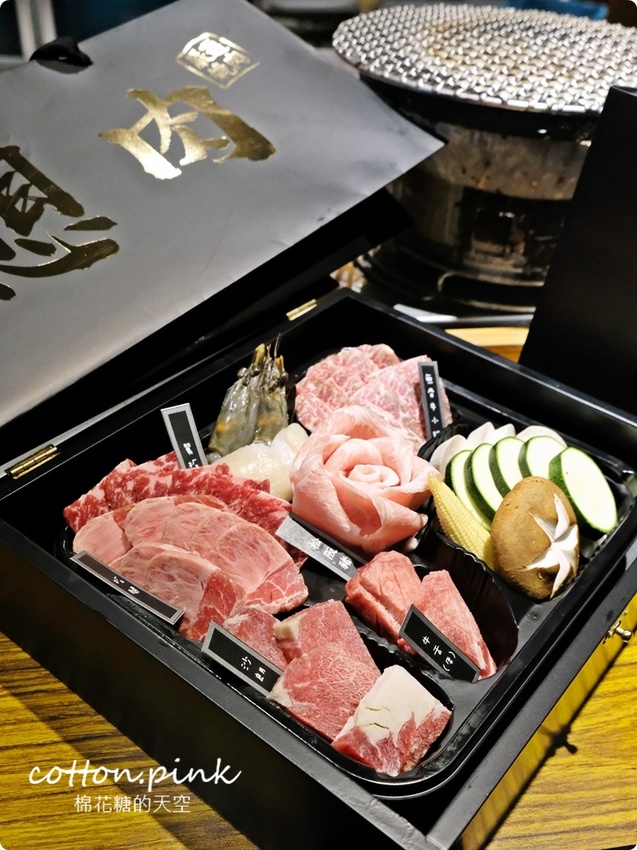 一打開大大的松阪豬肉花就先冒出來打招呼,身為一個吃貨收到這朵肉花會比收到真花還要興奮!看看這堅強的肉肉陣仗~還沒開烤先流口水了啊!