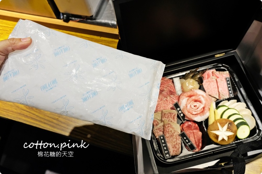除了高質感的包裝~貼心的小地方想肉也沒有忘記,每一盒外帶都會附上像個小枕頭一樣的冰包,不過阿季還是建議快快到家比較可以保持肉品的新鮮程度,另外也會幫大家準備好玫瑰鹽、檸檬汁、燒肉醬~不過阿季覺得原味就很好吃記得酌量添加唷!