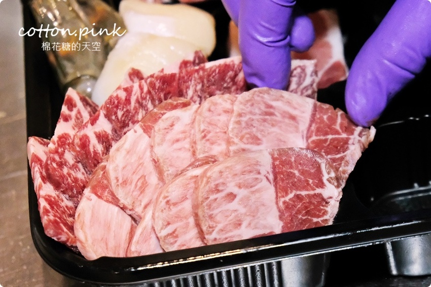 美國牛肉禮盒由無骨牛小排領軍~看看這切面也是很厲害的耶!滿滿的一整格放好放滿~雖然老闆說是兩人份量,但這肉量真的是實在到爆表,再額外準備一些其他的肉品~3-4個人吃也沒有問題!
