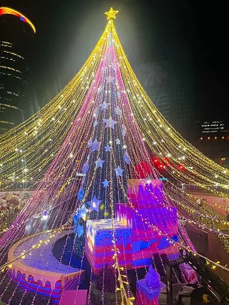 屏東縣青少年中心前,「巨大霓虹打卡牆」就像寫信給聖誕老公公般,不如先來打個卡吧!