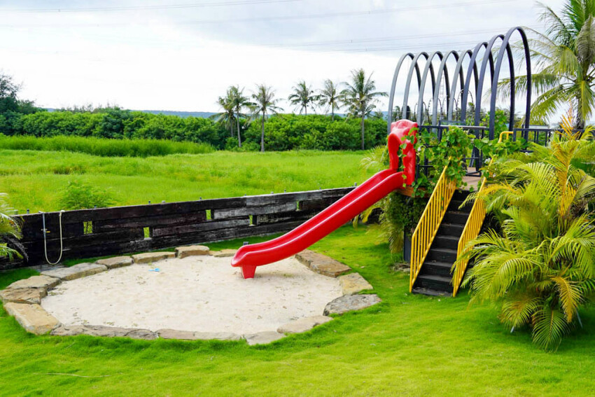兒童玩沙池,有小朋友最愛的溜滑梯