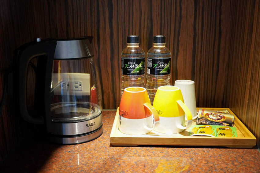 除了冰箱飲料以外,還有茶包及咖啡包,電熱水壺很方便,隨時可以沖來喝