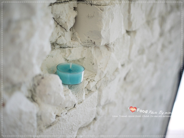 白磚牆內放一個淡藍色的蠟燭....我喜歡這張照片