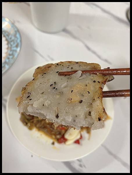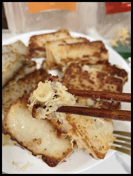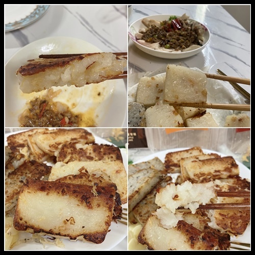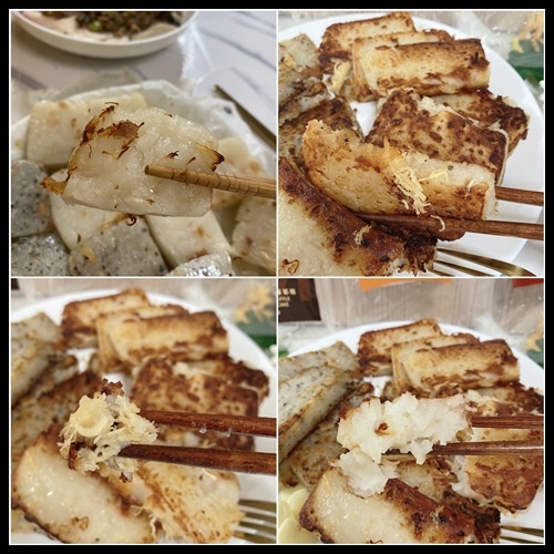 仔細看一下蘿蔔糕的表面..