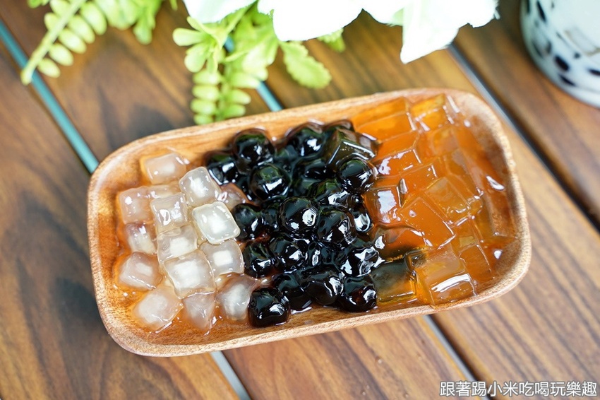 方形珍珠是粉角,有Q又帶嚼勁,黑珍珠比較是吃原味不會太甜。此外他們還有自製金磚(茶凍)可以加點,有淡淡的茶香QQ嫩嫩的