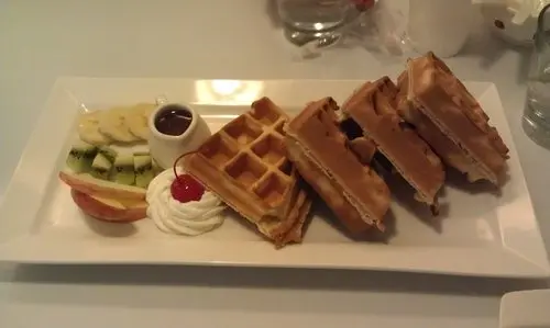 因為我是外帶,騎車放了有一段時間,因為載了小寶貝,無法現場享用,我不確定現場吃的口感如何,但我回家吃前有用烤箱的小火,烤了3分鐘,所以土司的外層變的酥酥的,真好吃。