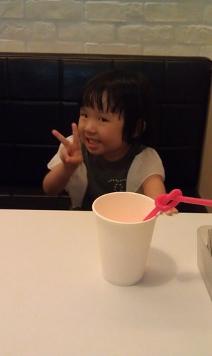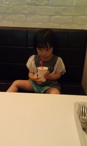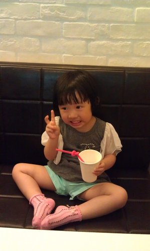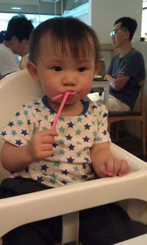 愛喝水水的龍龍,尤其不一樣的杯子,喝的格外的開心,這裡提供的是檸檬水..