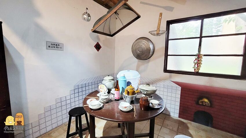 而且這邊也有保留許多以前眷村的文化跟生活方式,包含浴室使用方式、餐桌上的擺飾、服裝小細節等都有說明跟保留,文創店家跟拍照牆、餐廳也都有,算是很完整滿好逛的一個園區,重點是腹地廣大,小朋友放電非常完整!