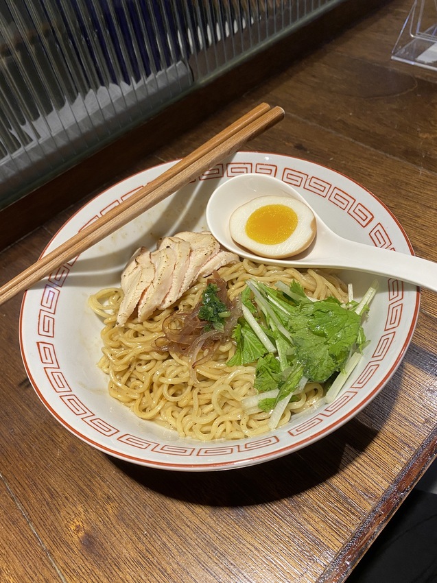 這碗乾拌拉麵,很是讓我驚豔,麵條很明顯地有韌度的Q彈,口味也偏重一點,整體來講超好吃超級香,又不油膩,點綴配菜像是沙拉一樣,很搭,炙燒雞肉也超香超爽口的唷!