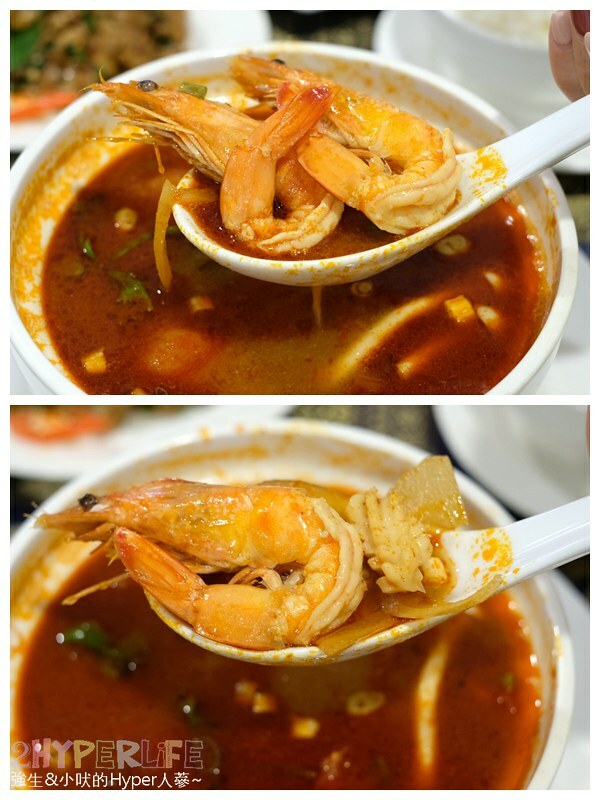 裡面有蝦子、花枝、番茄、菇類等菜色。如果你喜歡酸辣湯,不要錯過這一道泰式口味的