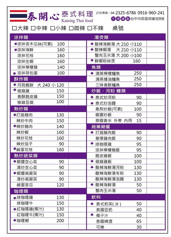 來看一下泰開心的菜單,如果是工商團體訂購可以提前一天預約,打卡留言還可以贈送泰式奶茶一杯,價格其實都算合理,如果人數較多可以直接來個套餐的方式更優惠啦!