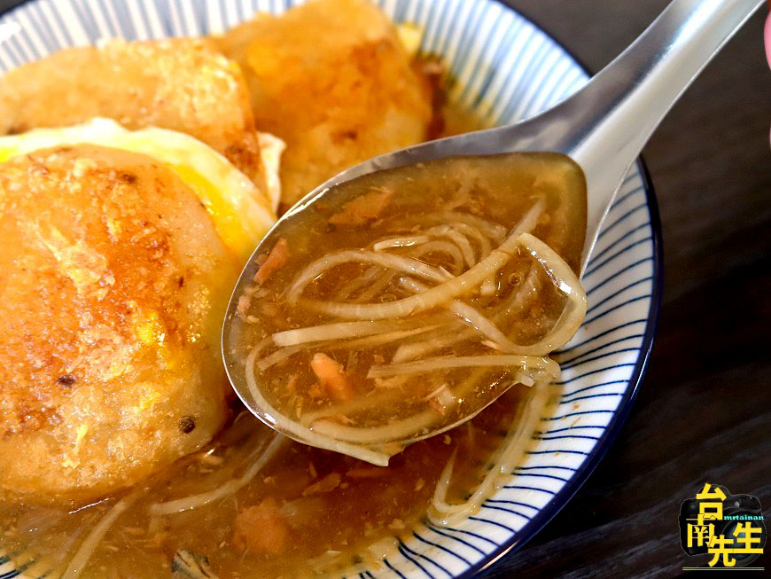 自製的肉燥筍絲羹,香氣濃郁不油膩,配著米粿一起入口更對味