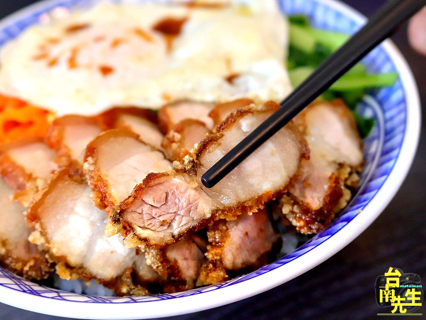 鹹豬肉飯:鹹豬肉使用三層肉部位經過獨家醃料醃漬入味,肥瘦分明富含層次,口感Q嫩中帶點嚼勁