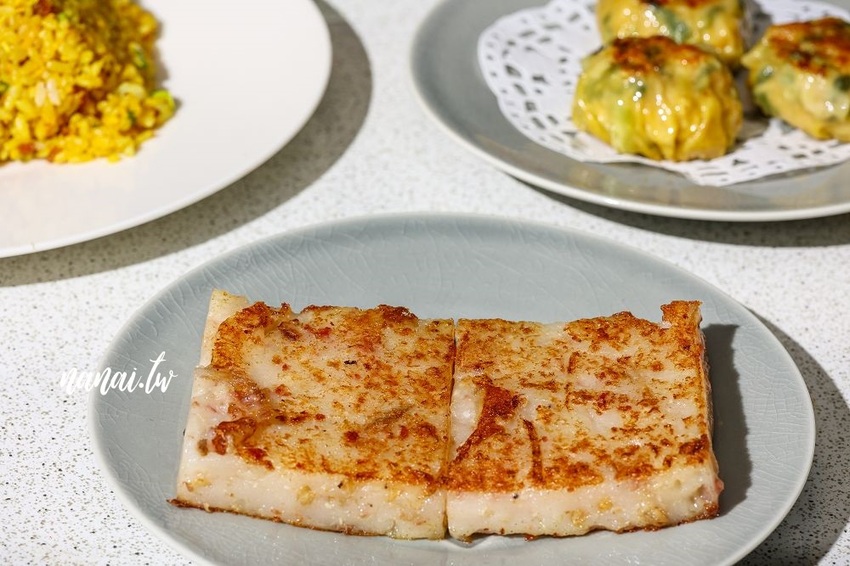 港式蘿蔔糕也很多人點,口感較特別於米漿比例掌握恰恰好,外表煎的微脆,輕咬一口有著柔軟綿密口感,不像台式蘿蔔糕紮實彈牙,繼續咬二口可以吃到東蝦、肉末、臘腸..等食材,味道上香鹹滋味更襯托出臘香味,若嚐完原味可以沾些許蒜蓉醬,口味更有層次。