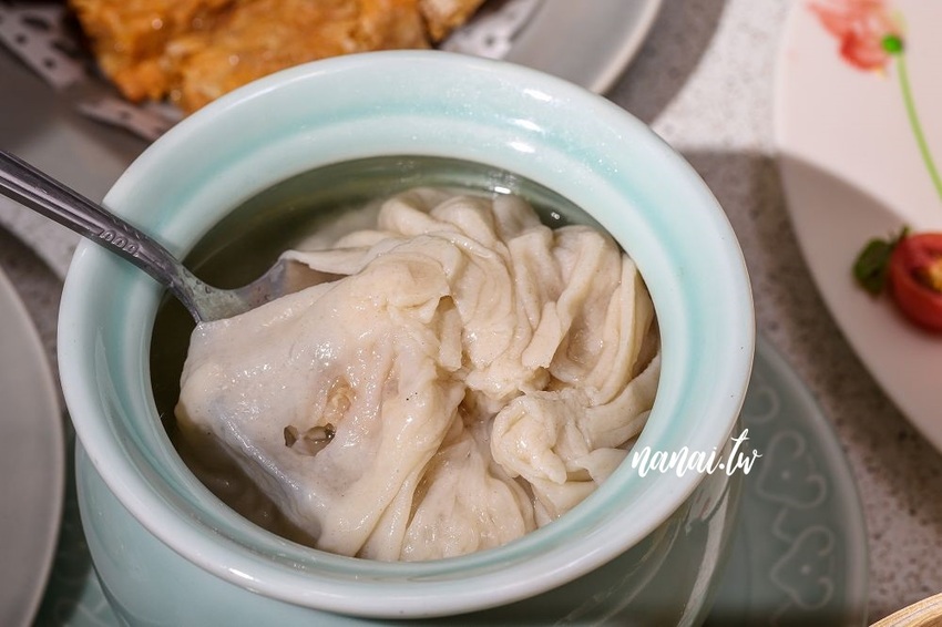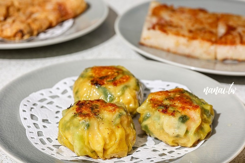 這道韭菜煎餅可是真材實料,將蝦仁、豬肉蝦漿、韭菜包入煎餅,再以先蒸後煎為製作,外皮煎的金黃恰恰,一咬開煎餅裡的內餡好飽滿,湯汁在口中竄流,咀嚼時滿口韭菜香,夾著鮮彈脆口的蝦仁,一點也不乾口。