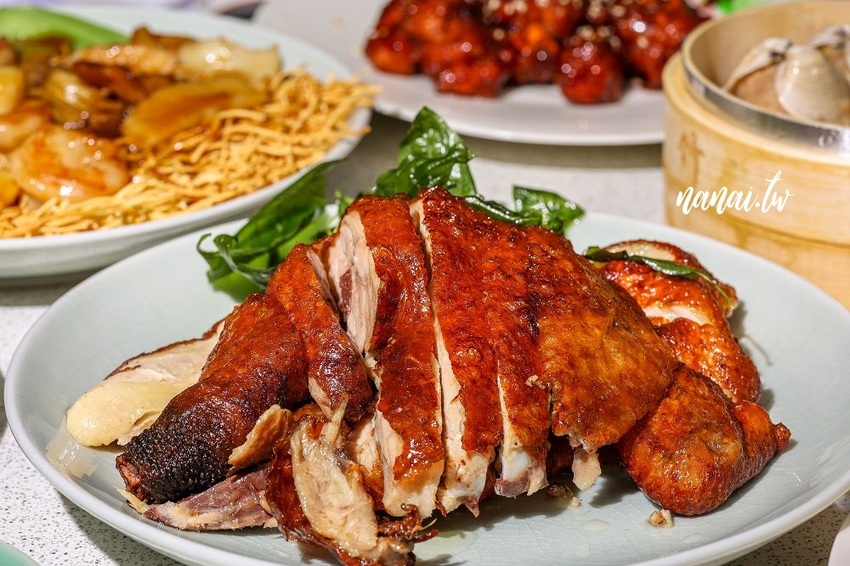 一端上當紅脆皮雞就感覺好厲害,好想快點品嘗!這道脆皮雞製作繁雜費工,淋上醋水下油鍋炸,炸的過程先高溫定型後再小火慢慢炸,這樣肉質比較不乾柴,吃一口外皮有薄薄一層脆皮糖衣,再咬第二口肉香嫩口,油而不膩。