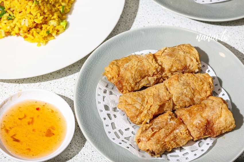 小編也喜歡這道腐皮捲!嚴選腐皮內餡包入蝦仁與韭黃、純草蝦漿放入油鍋炸,表皮炸得金黃微酥,咬下口酥香腐皮,配著淡淡的韭黃香,以及鮮甜的蝦仁,口感酥中帶扎實感,在沾著冰梅醬一起入口顯得不油膩,更讓人越吃越涮嘴啦!