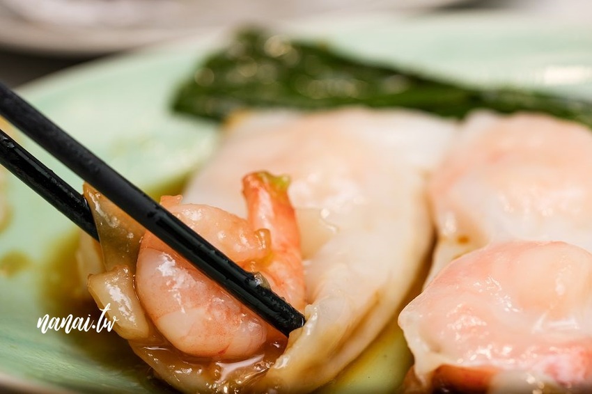 腸粉皮裏著飽滿又大尾的鮮蝦,咬下口鮮蝦彈脆於嘴裡徜徉,再加上韭黃香襯托鮮蝦甜,以及薄皮腸粉,入口時皮的Q度與滑嫩感拿捏剛剛好,最後沾上鹹香適中的醬汁,讓人忍不住一口接著一口。