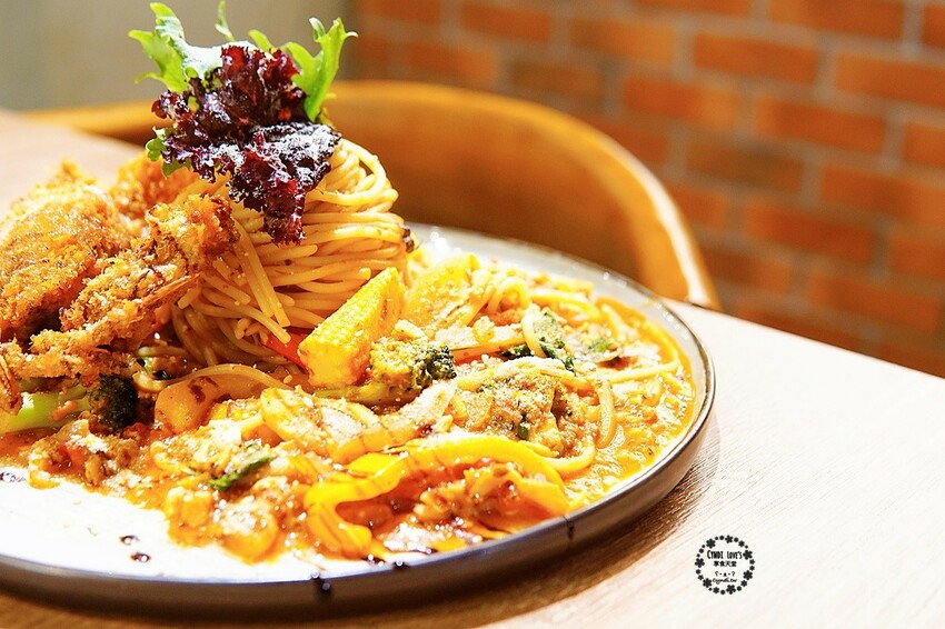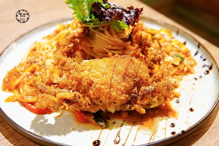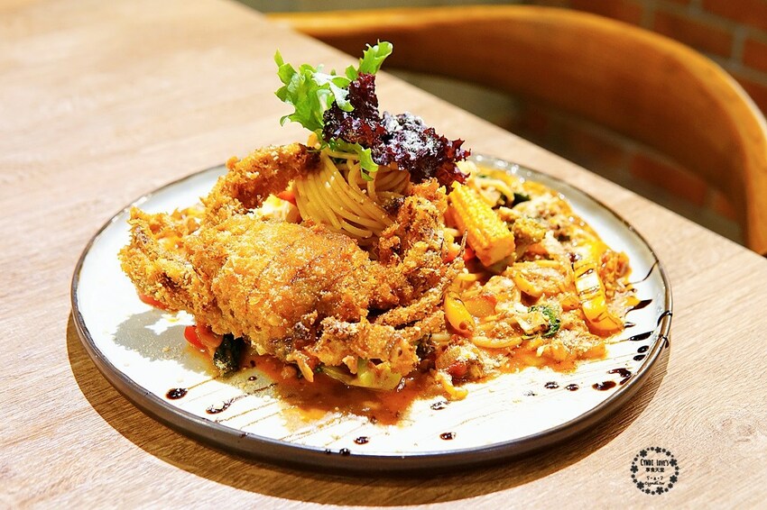 適合吃蟹的季節當然要來品嚐蟹啦,250元的酥炸軟殼蟹佐紅醬麵有一整隻軟殼蟹加上份量不少的義大利麵真的很超值,上桌時香氣馬上就撲鼻而來,鮮豔的顏色讓人食指大動,想大快朵頤。