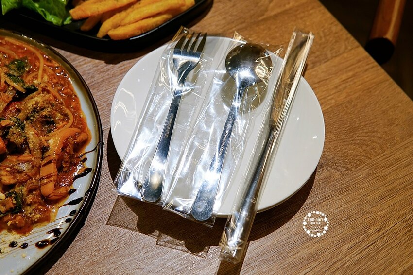 防疫期間的餐具都用塑膠袋包好,防疫措施做得很到位呢。