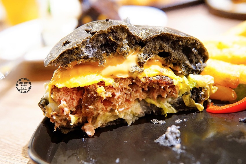貓王花生牛肉竹炭漢堡特餐的牛肉口感扎實,當你一口咬下時,隨之而來的就是滿滿的鮮甜味,佐上美奶滋增添滑順的口感,生菜的清脆,濃郁的起司,以及香濃的花生醬,那一口咬下真的會讓人驚奇,而且表皮的竹炭麵包,別看它黑黝黝的,鬆軟篷鬆口感又讓整體提升層次感,小荻自己很喜歡這款貓王花生牛肉竹炭漢堡特餐呢。