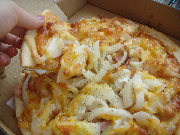 以往不愛吃Pizza的三姊弟今天卻吃的津津有勁