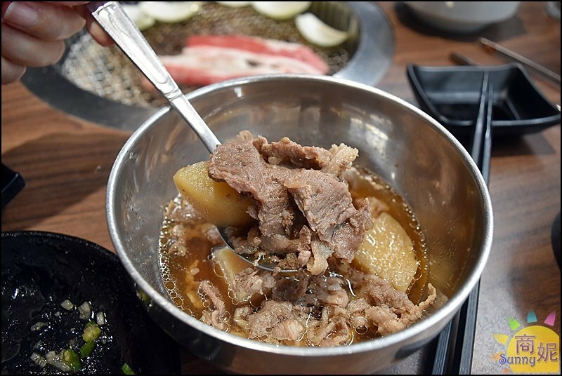 這道燒肉馬鈴薯湯風味有點像壽喜燒,牛肉很嫩加上甜甜的醬汁非常好吃,連馬鈴薯都燉煮的很通透軟綿蠻好吃的。