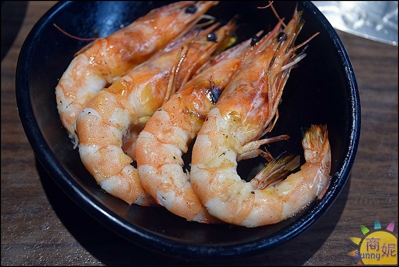 我們點好多肉一直吃,最後加點時才點了海鮮,肚子實在裝不下,海鮮類我們只點了大白蝦和鹽烤小卷。