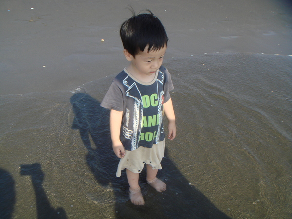 走在乾的沙子上簡直是燙死了,只要走過那乾沙子就是溫暖的海水