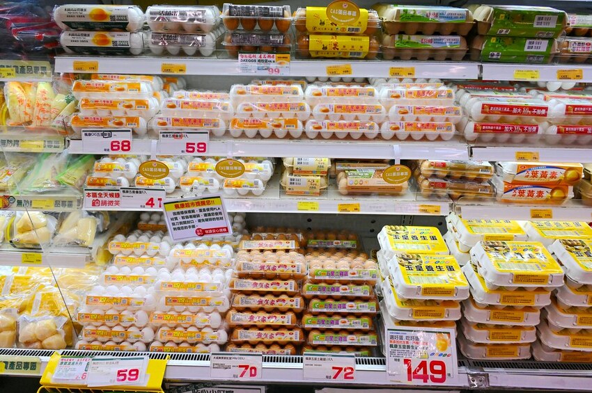 旁邊的雞蛋區種類也相當多樣,除了有產銷履歷保證外,也同樣堅持到店上架只賣四天!