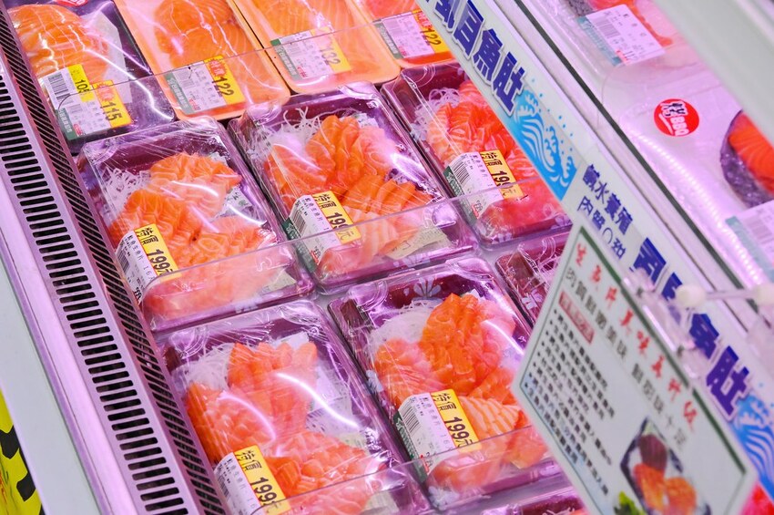 再來就是很搶手的另一種鮭魚生魚片/綜合生魚片,每盒總共會有16片只要199元,新鮮度跟厚度也相當不錯。