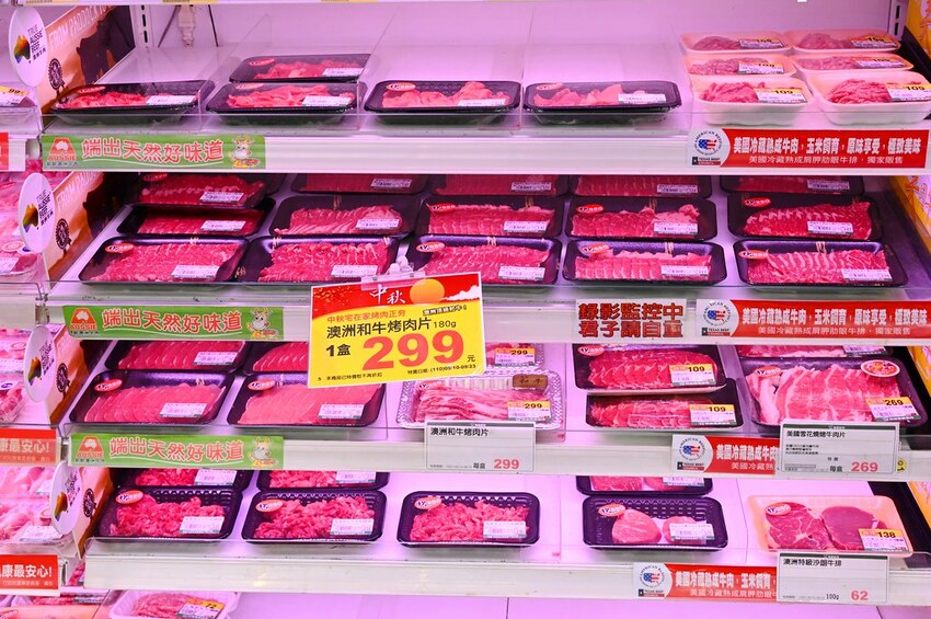 再往旁邊就是各種冷藏肉品,在牛肉部份中秋節優惠主打每盒澳洲和牛180g只要299元,幾乎是剛開門沒多久就剩沒幾盒了,過了中秋節就搶不到了,所以要把握喔!另外我非常推薦的整塊冷藏美國肋眼牛排230g(8盎司)只要150元,