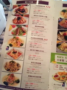 假日沒有商業午餐,所以我們2人點了一份排餐全餐和一份義大利麵全餐、再加點兩隻焗烤蝦。