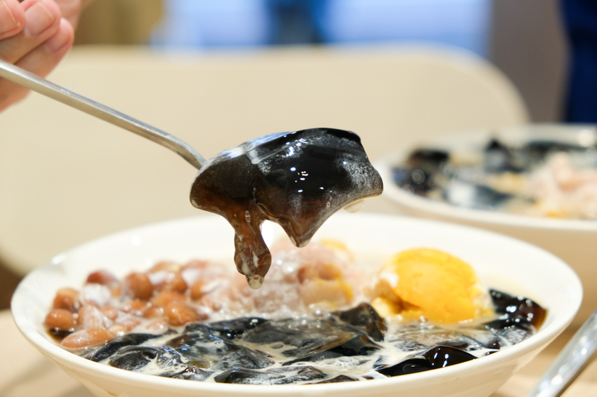一般在冰店比較常吃到的都是仙草凍,黑糖凍好像是我第一次吃到欸!齒切感像是市場裡頭會賣的綠豆粉粿那樣,黑糖味道很香!