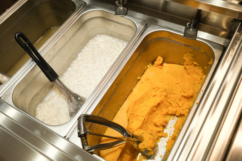 台農 66 號紅心地瓜做成的地瓜泥,顏色金黃,看起來超美!