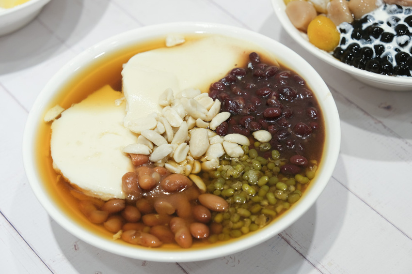 豆花有著黃豆的香氣,口感偏向古早味豆花,豆類的口感都算適中,不過私心希望花生可以再煮爛一點會更好吃。