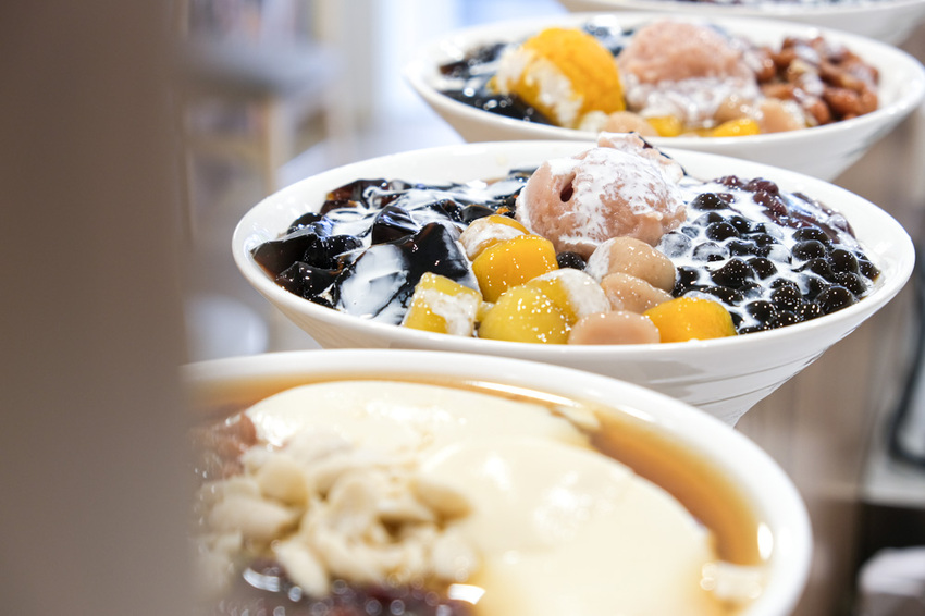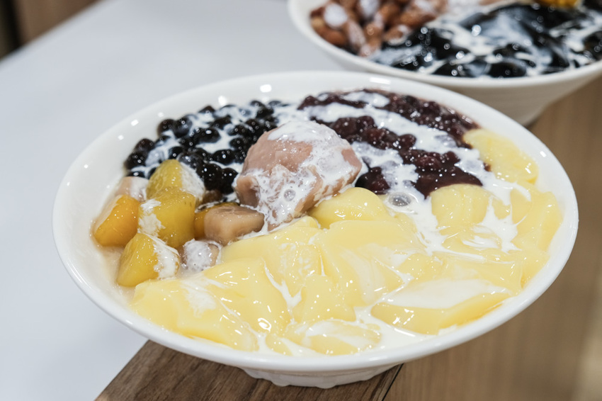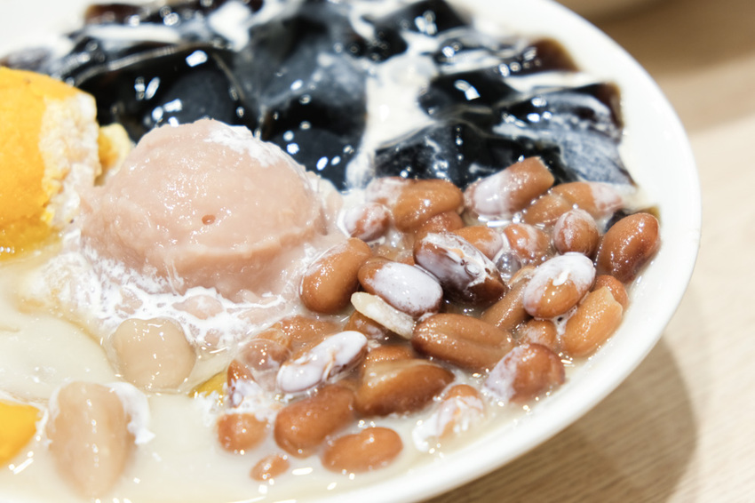 三色芋圓、地瓜圓,咬起來是有 Q 彈感、有嚼勁的那種,不會軟趴趴,每一顆也都可以吃到真材實料的原味。