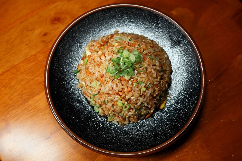 炒飯粒粒分明!加入為數不少的鮭魚肉塊,鹹度調味適中~