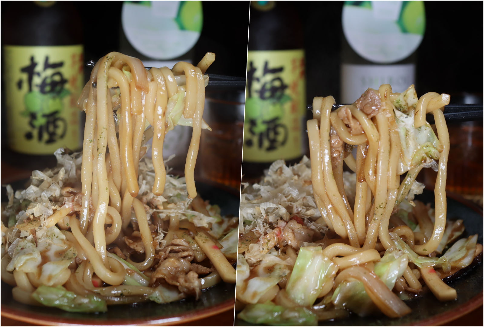 炒烏龍口感好Q阿~甜中帶點鹹的調味剛剛好,加入脆口的高麗菜與豬肉片