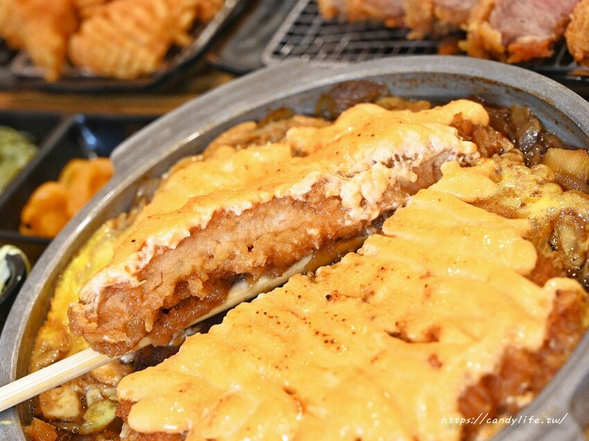 厚實的豬排除了壽喜醬的鹹甜滋味,還多了濃郁的明太子香,不過明太子醬吃多會稍微膩口些,因為豬排上桌時浸泡在壽喜醬中,所以外皮吃起來不會有酥脆口感唷